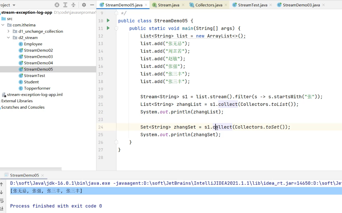 Stream<String> s1 = list.stream().filter(s -> s.startsWith("张"));