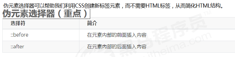 伪元素选择器可以帮助我们利用CSS创建新标签元素,而不需要HTML标签,从而简化HTML结构。