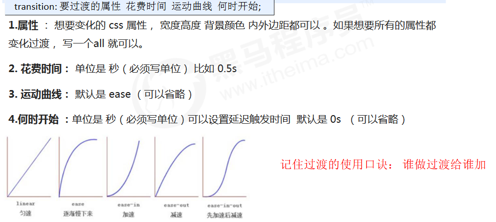 注意:以上方法是让块级元素水平居中,行内元素或者行内块元素水平居中给其父元素添加 text-align:center 即可。