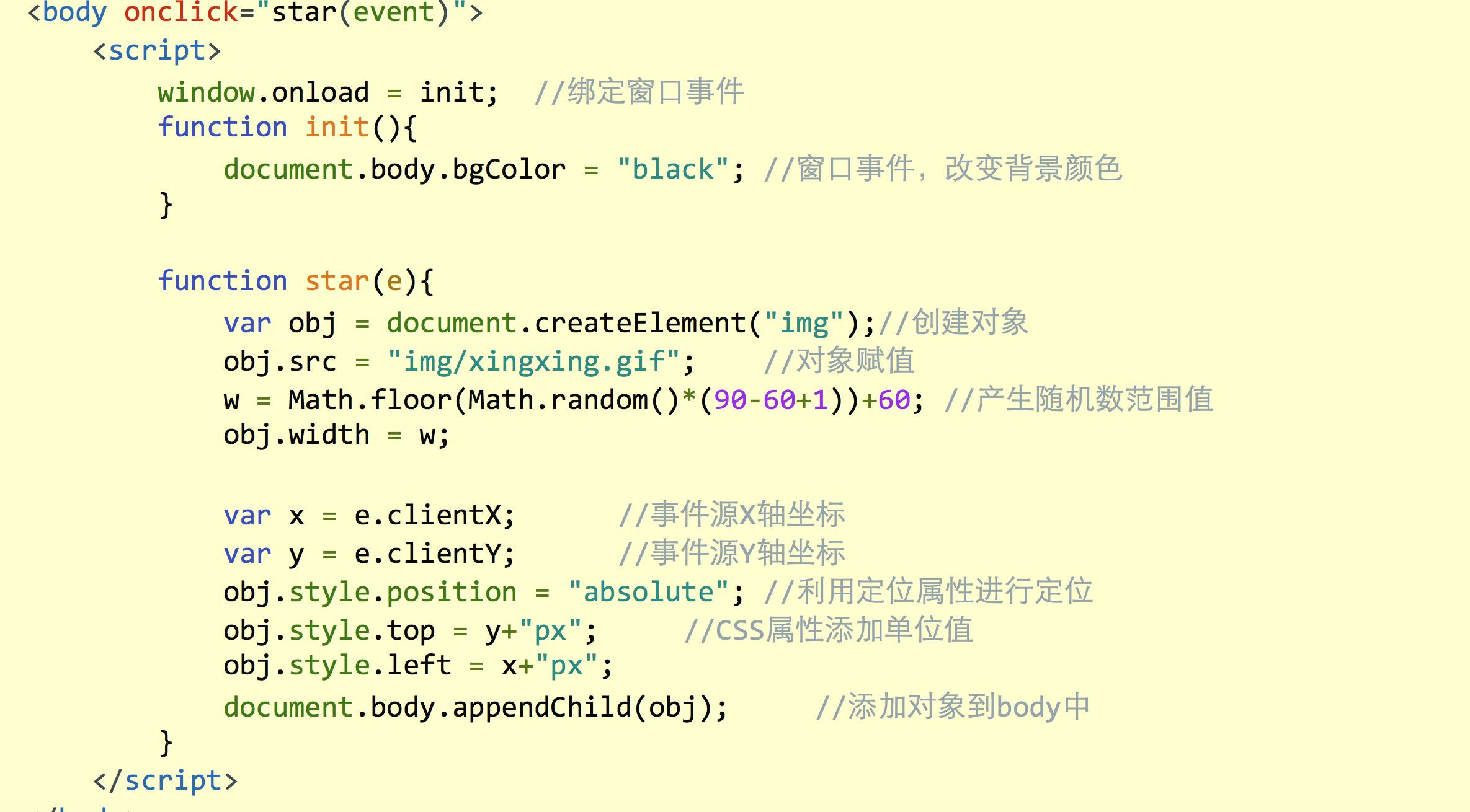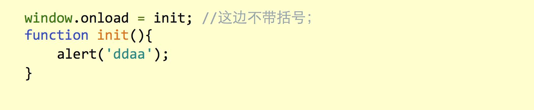 Onload,在网页一打开的时候发生(注意:必须是把所有东西都加载完成之后)例如:window.onload=init注意:函数名init之后没有括号;
