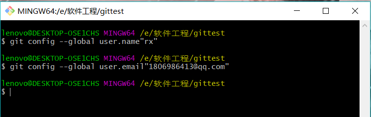 2.在进行指令相关的操作时,总是会让我在此设置name和email,但每次设置都不成功,解决方法为在目录下找到.git,进入目录后找到config文档,点开文档在其中输入[user] name=? email=?,再此文档中输入自己的信息即可完成配置不成功的问题。