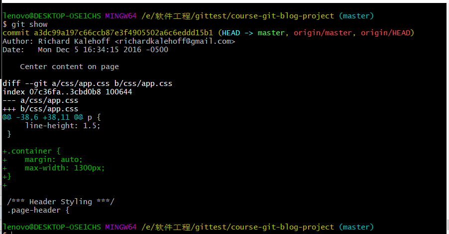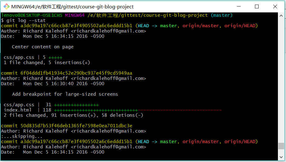 同时git log -p/git log show可以加想要查看的commit的SHA即可查看特定的信息