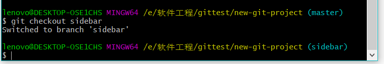 但这仅仅进行了创建,我们还要进行切换;要在分支之间进行切换,我们需要使用 git 的 checkout 命令。