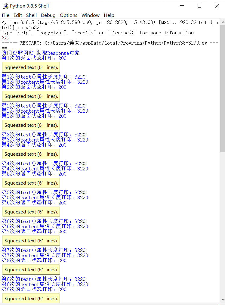 print('第' + str(x) + '次的text()属性长度打印:' + str(len(r.text)))