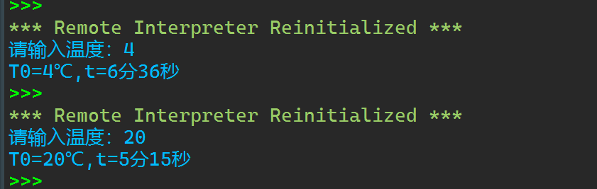 1 #煮出完美鸡蛋的时间 2 import math 3 4 ρ=1.038 5 c=3.7 6 K=5.4*10**(-3) 7 M=67 8 Tw=100 9 Ty=70 10 T0=eval(input('请输入温度:')) 11 12 t = (M**(2/3)*c*ρ**(1/3))/(K*(math.pi)**2*(4*(math.pi)/3)**(2/3))*math.log(0.76*(T0-Tw)/(Ty-Tw),math.e) 13 minute = int(t//60) 14 second = int(t%60) 15 print(f'T0={T0}℃,t={minute}分{second:.0f}秒')