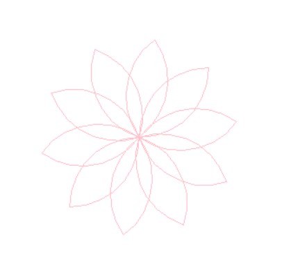 from turtle import * setup(800,600) pencolor('pink') n = 10 for i in range(n): # 绘制一片花瓣 for j in range(2): circle(80,90) left(90) speed(0) right(360/n) hideturtle() done()