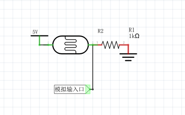 光敏电阻的阻值很大,因此为了让光照强度变化时,电压幅值变化更明显,需要接一个阻值较大的电阻,这里选用了1千欧的电阻。
