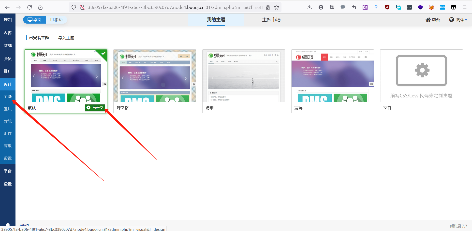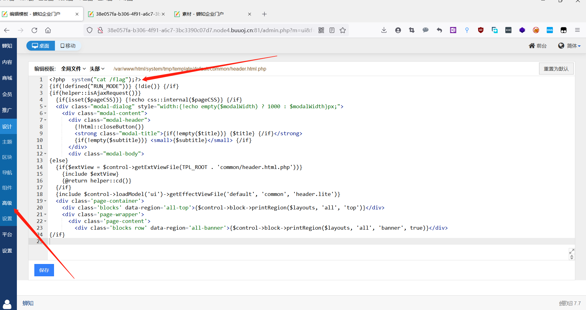 主题-自定义,发现网站头部可直接编辑php代码,且不需要任何验证,于是添加php的rce代码后直接获取flag