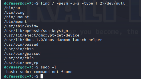 find / -perm -u=s -type f 2>/dev/null