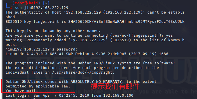 ssh jim@192.168.222.129