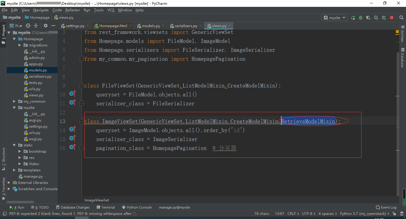 继承RetrieveModelMixin类