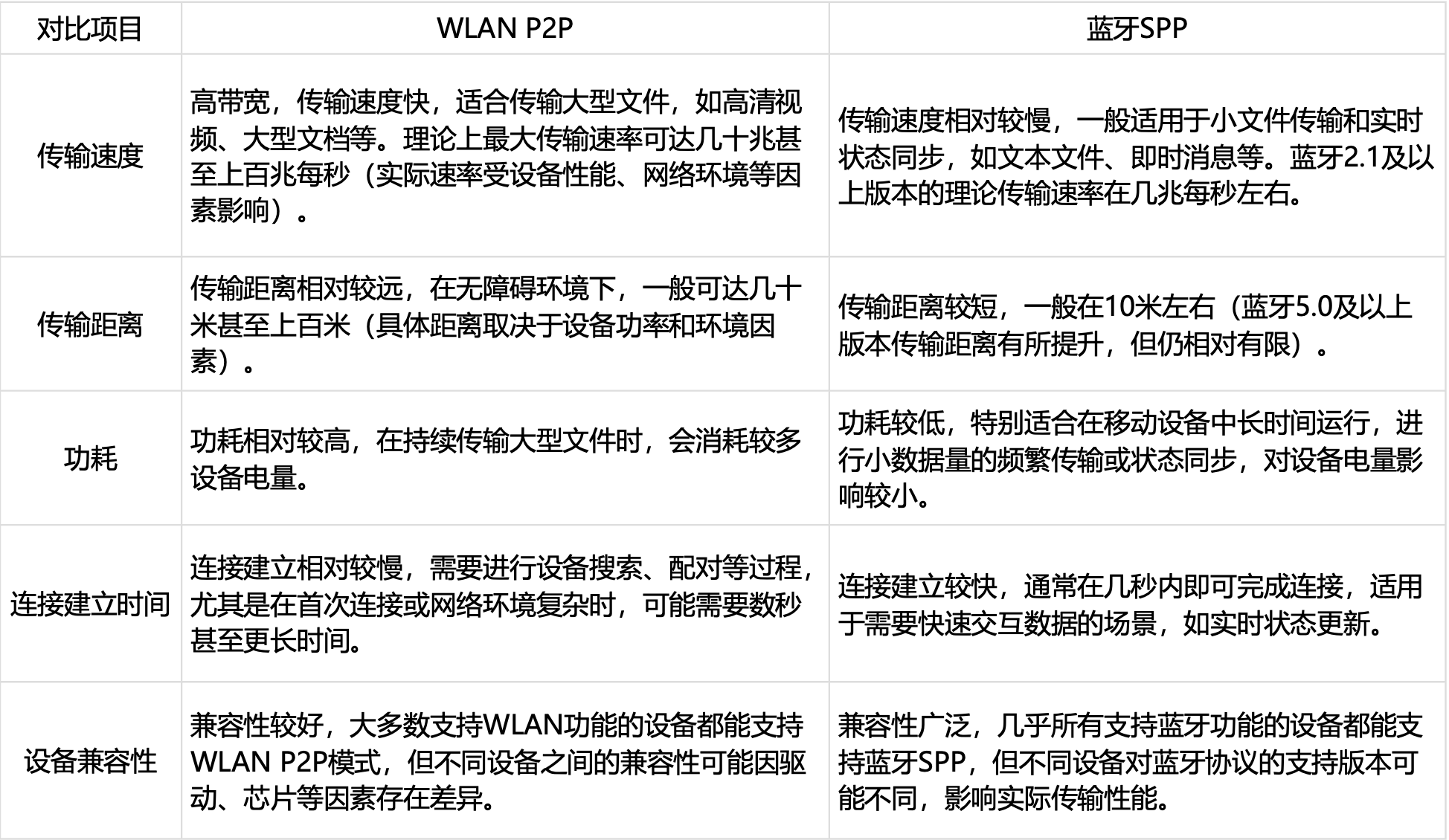 六、WLAN P2P与蓝牙SPP在文件共享和数据同步中的特点对比