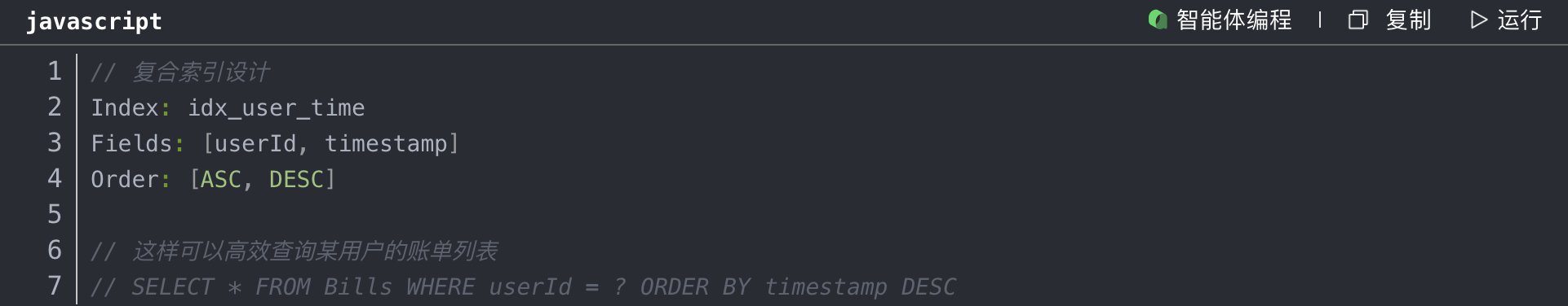 3、对于账单查询场景,我们创建了复合索引: