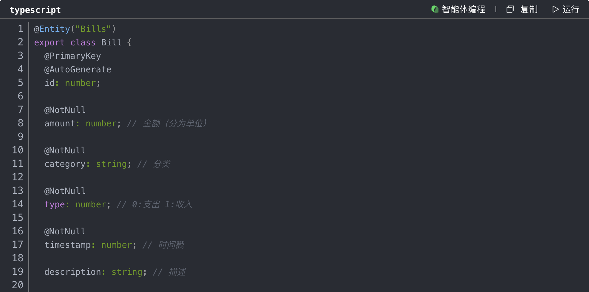 记账应用的核心是数据结构设计。我们采用CloudDB的Object Type定义了四个核心对象:
