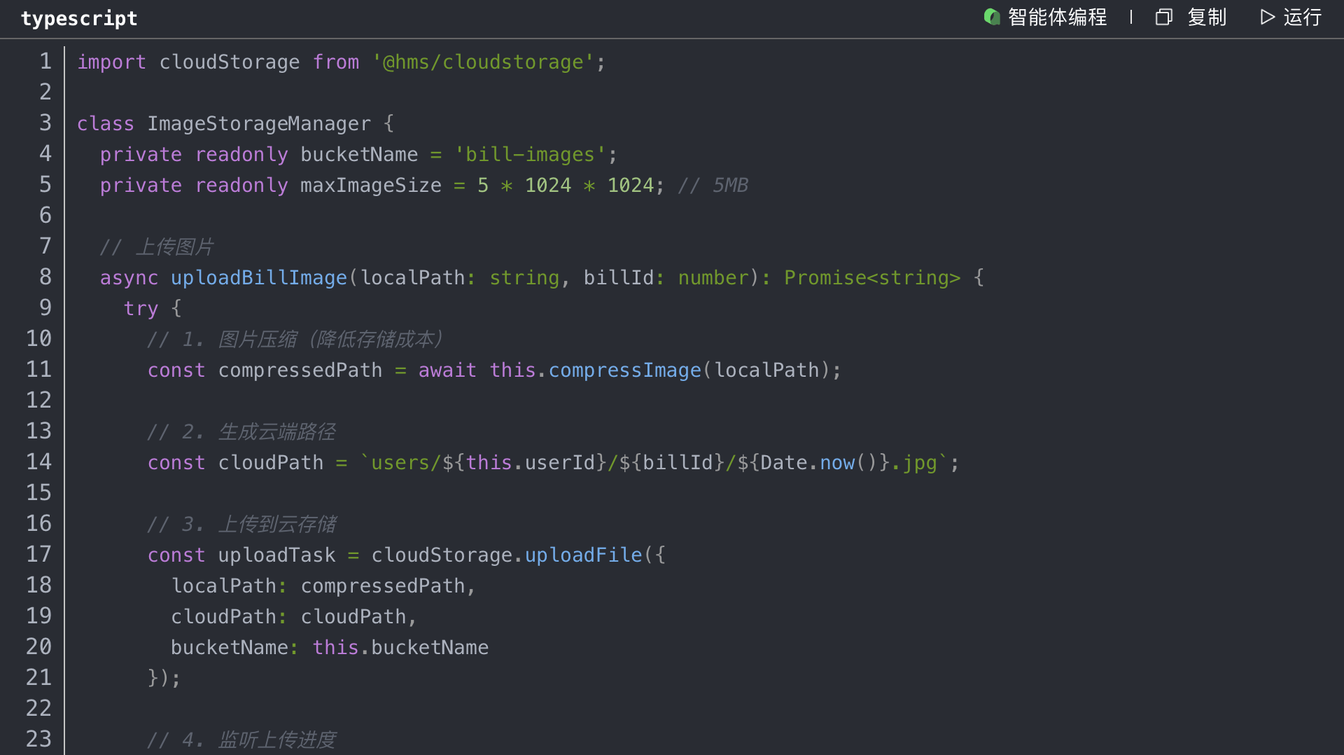 记账场景中,用户经常需要拍照保存发票、小票等凭证。我们使用Cloud Storage来存储这些图片。