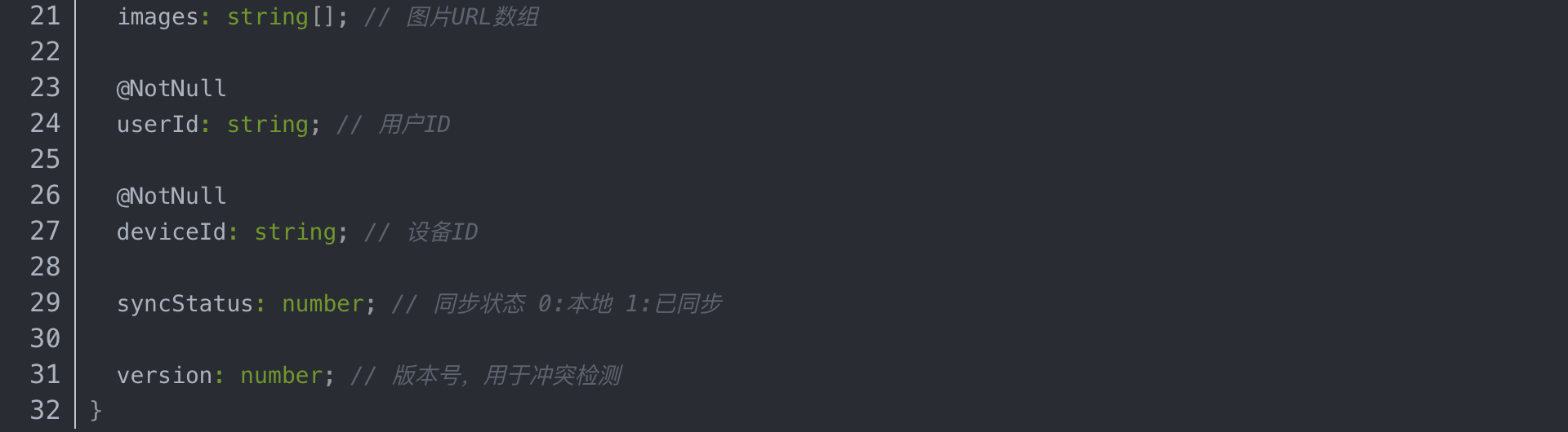 · 预留扩展字段(如extra: string存储JSON)