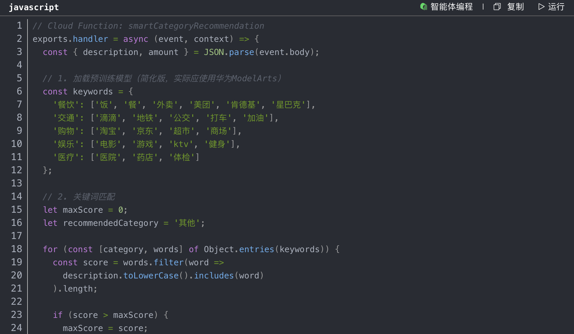我们使用云函数实现基于机器学习的账单智能分类: