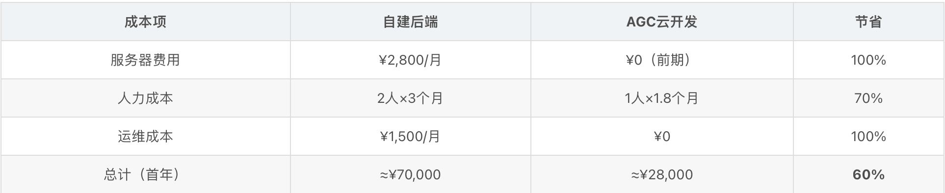 · 开发成本节省:60%