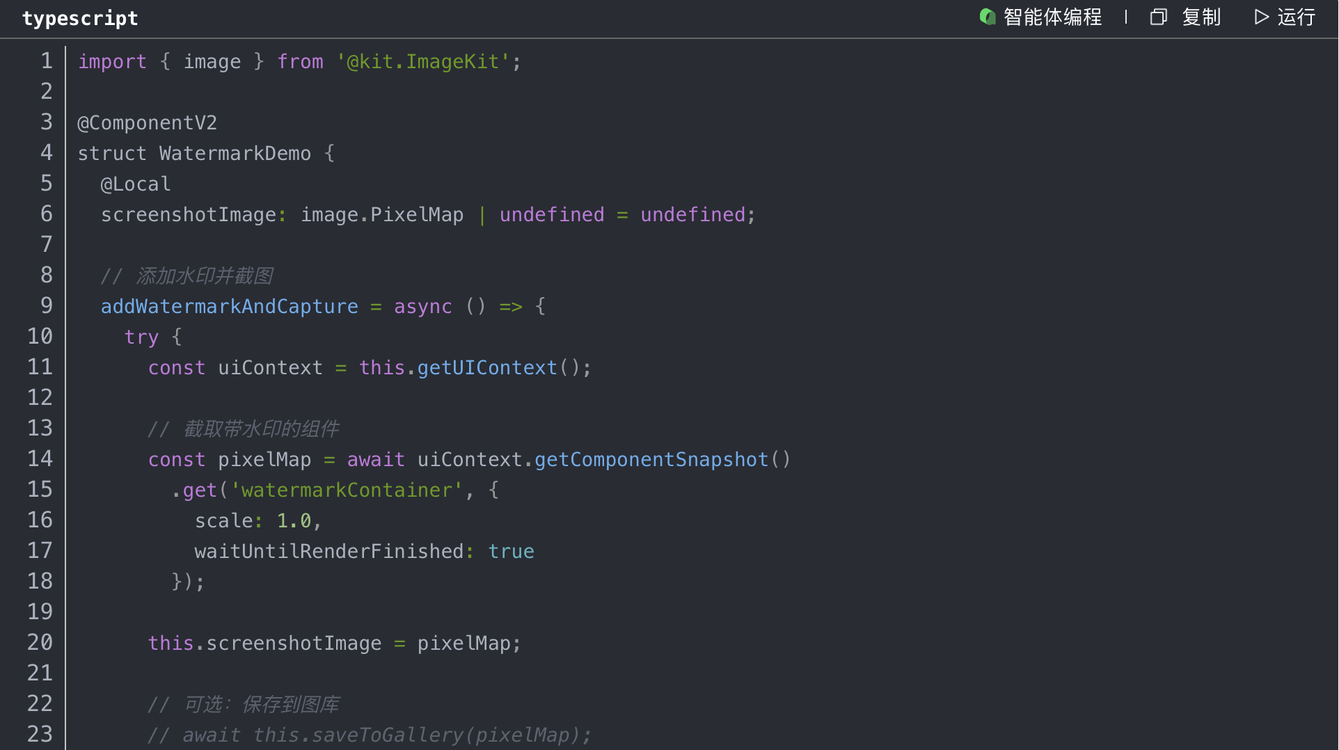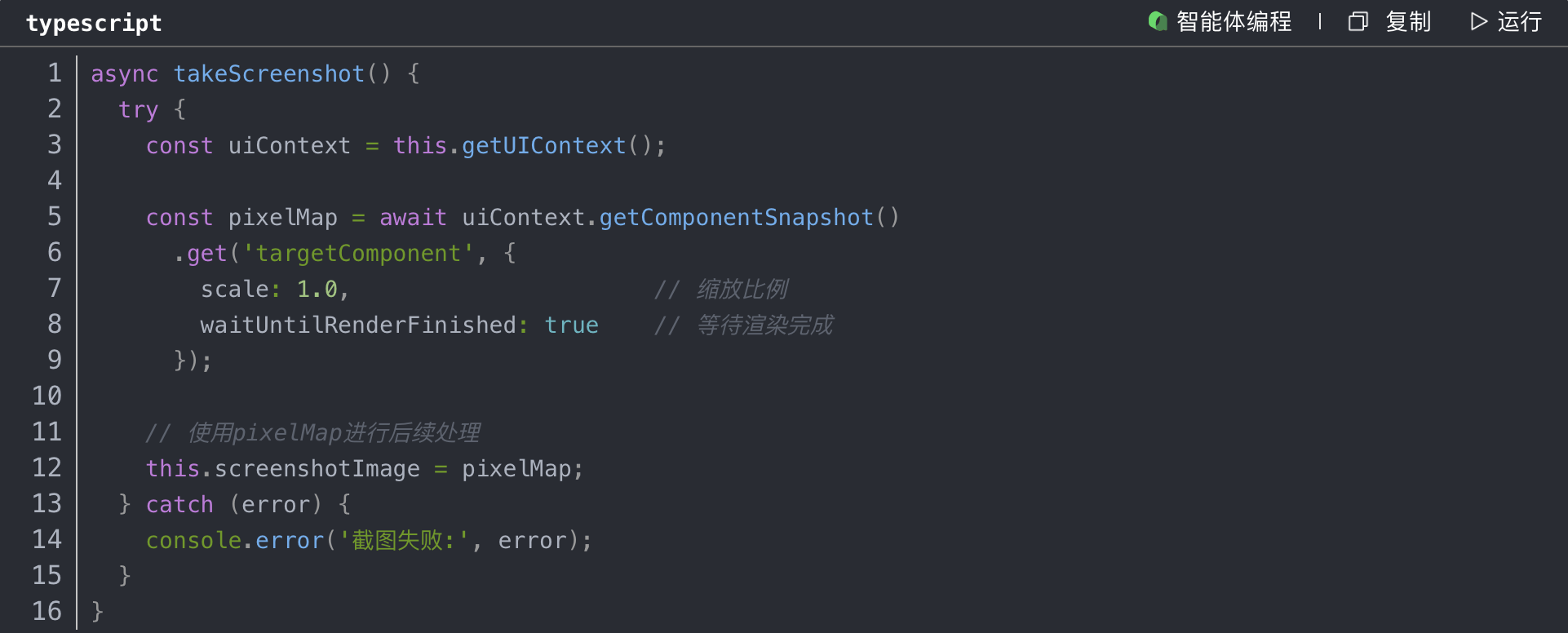 componentSnapshot是HarmonyOS提供的组件截图能力,可将UI组件转换为PixelMap图片数据。