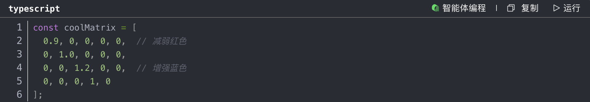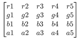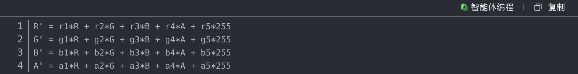 colorFilter使用4×5颜色矩阵对每个像素的RGBA值进行数学变换: