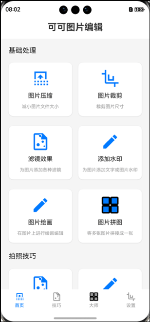 随着移动互联网的快速发展,图片处理已成为用户日常高频使用的功能之一。本文将基于HarmonyOS 5.0.2平台,从零开始构建一款功能完善的图片处理应用——可可图片编辑。该应用涵盖图片压缩、裁剪、滤镜美化、水印添加等核心功能,通过本实战项目,您将全面掌握HarmonyOS图像处理的关键技术和最佳实践。