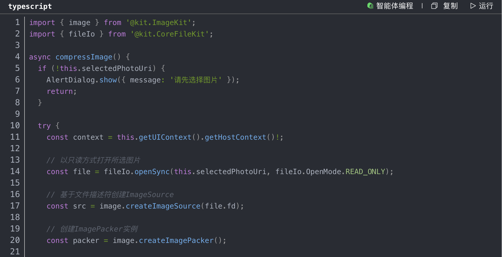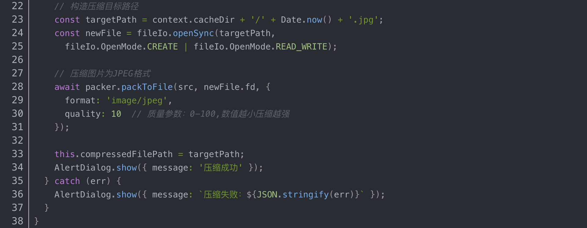 使用ImagePacker进行图片压缩编码,支持自定义压缩质量: