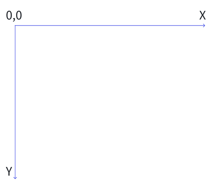 Canvas坐标系:以左上角为原点(0,0),向右为X轴正方向,向下为Y轴正方向。