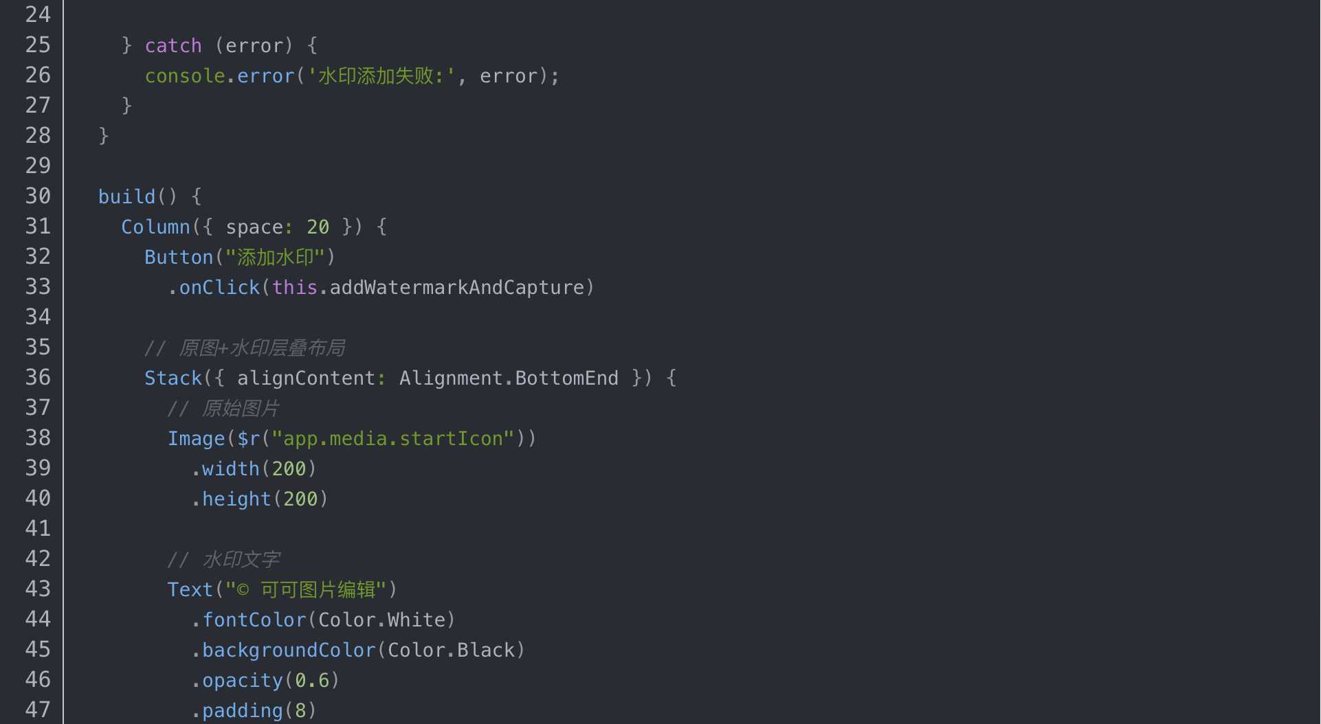 1、预览阶段:使用Stack层叠布局将水印文本/图片覆盖在原图上
