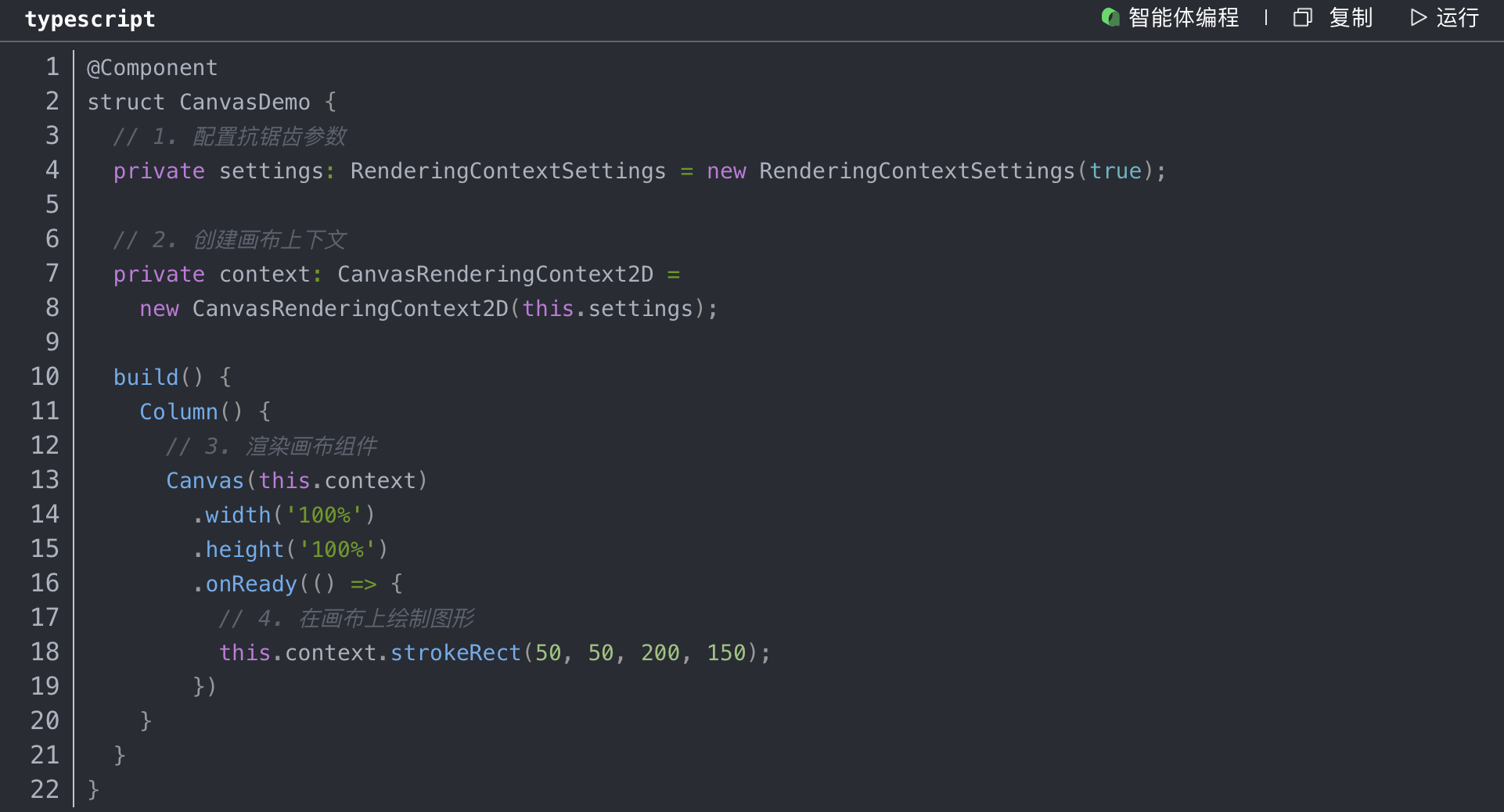 Canvas组件提供了强大的2D绘图能力,使用步骤如下: