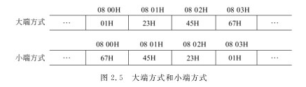 MIPS、SPARC、HP PA等机器都采用大端方式。小端方式将数据的最高有效字节MSB存放在高地址中,将最低有效字节LSB存放在低地址中,即数据的地址就是LSB所在的地址。