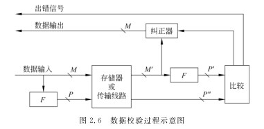 P一起被存储或传送。当数据被读出或传送到目标部件时,和数据信息一起被存储或传送的校验位也被得到,用于检错和纠错。假定读出后的数据为M',通过同样的运算F对M'也