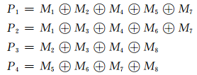 根据上面的公式,可以求出每一组对应的校验位Pi(i=1,2,3,4).数据M和校验位P一起被存储。读出后的数据M通过上述同样的公式得到新的校验位P',然后将读出后的校验位