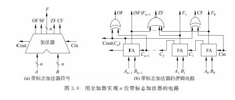 加/减运算,还需要在无符号数加法器的基础上增加相应的逻辑门电路,使得加法器不仅能计算和/差,还要能够生成相应的标志信息。