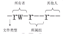 第2-4位:表示文件所有者(用u表示)的权限,有字母则由该权限,为-则表示没有该权限