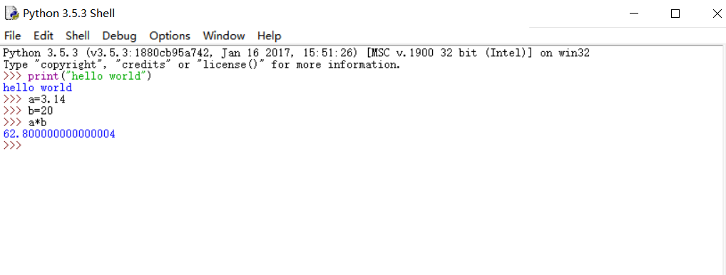 1、按照实验指导安装IDLE,尝试交互式运行python程序和批量运行python程序二种方式。