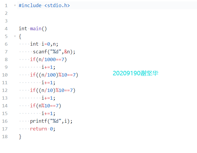 | 从键盘读入一个4位数的整数,求该数中有多少位是7 | |