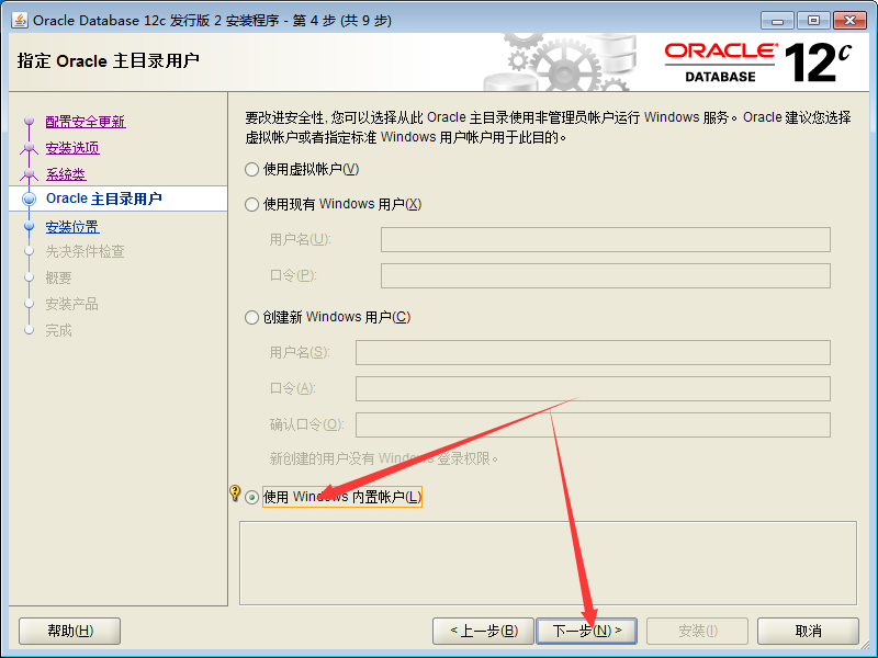 选择使用Windows内置账户——>下一步