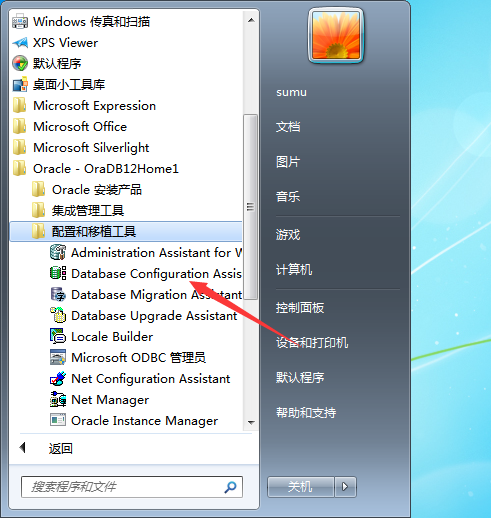安装完成后打开开始菜单,找到Oracle - OraDB12Home1——>配置和移植工具——>打开第二个