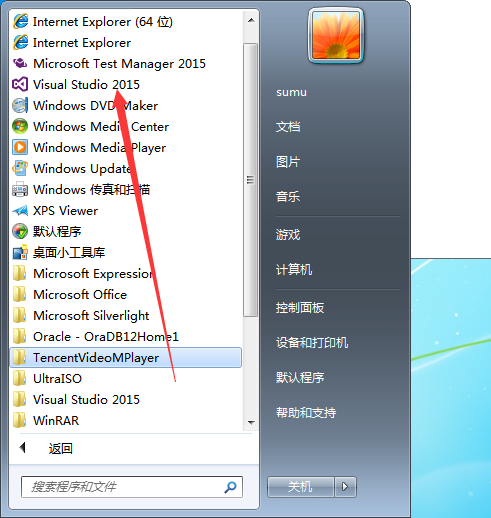 安装完成后在开始菜单中找到visual studio 2015并打开