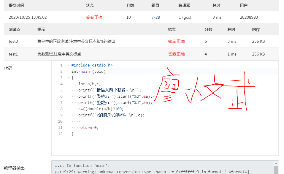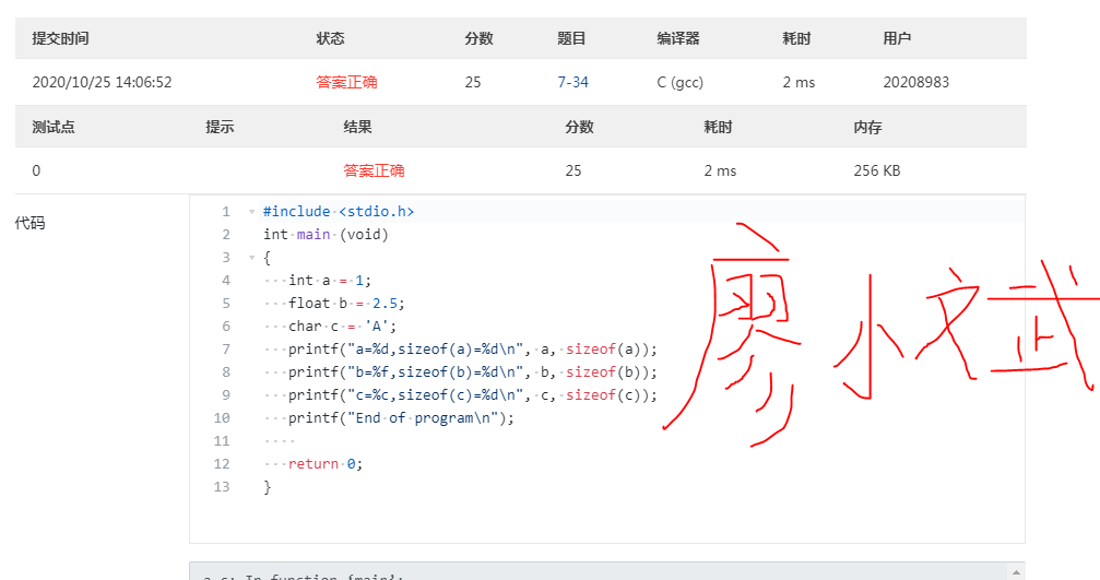 | 2.2 请完成PTA作业:2020秋C语言作业2。在博客作业中贴出完成图片 | |