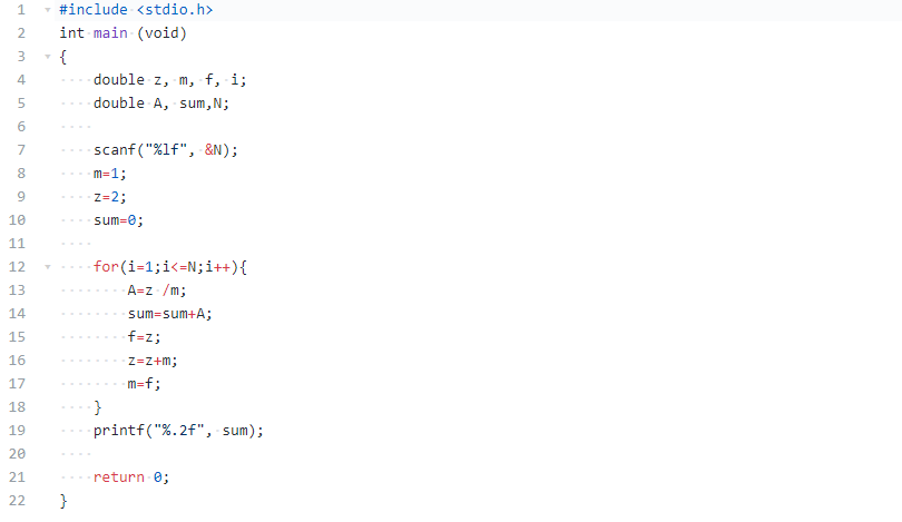 | 数据表达:变量是双精度浮点型 z, m, f, i,A, sum,N; |
