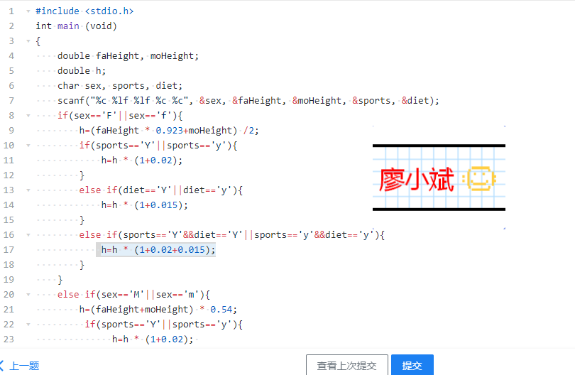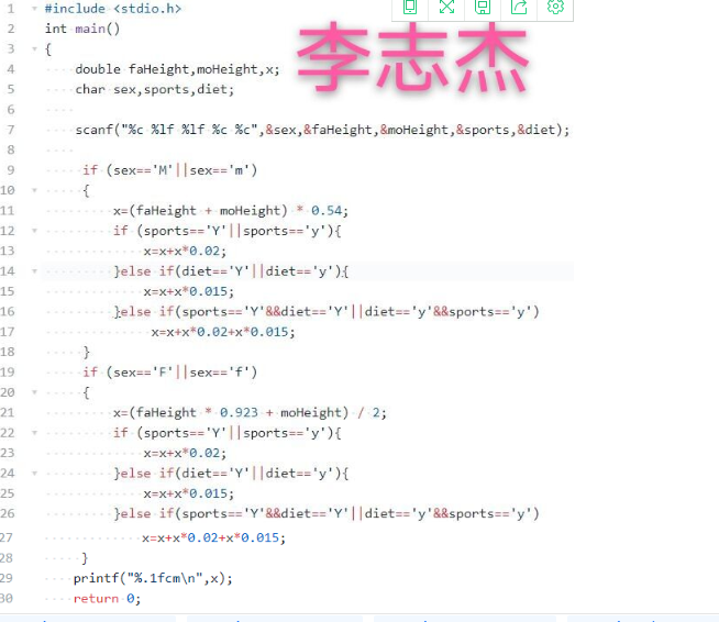 1.1C程序设计 实验2-3-1身高预测。