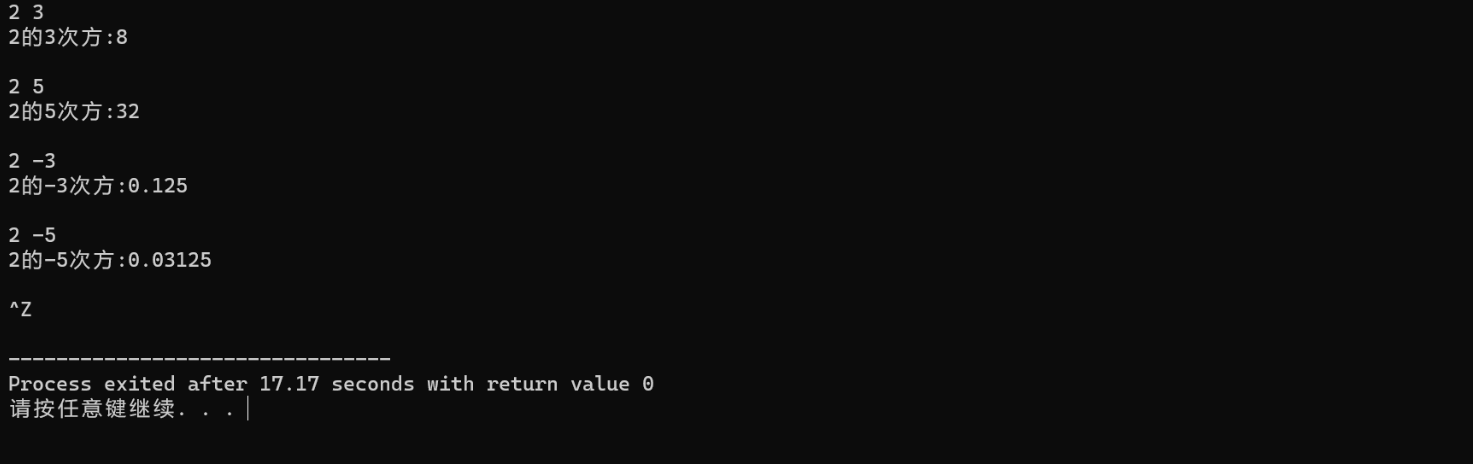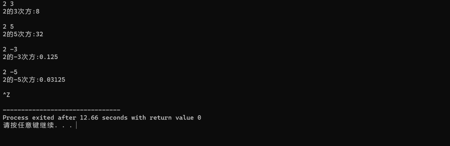 printf("%d的%d次方:%g\n\n",x,y,ans);