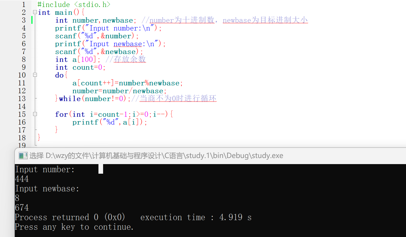 int number,newbase; //number为十进制数,newbase为目标进制大小
