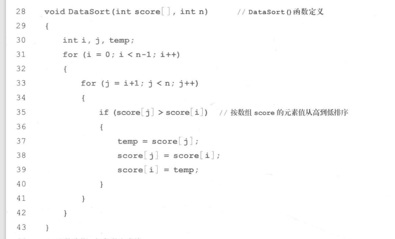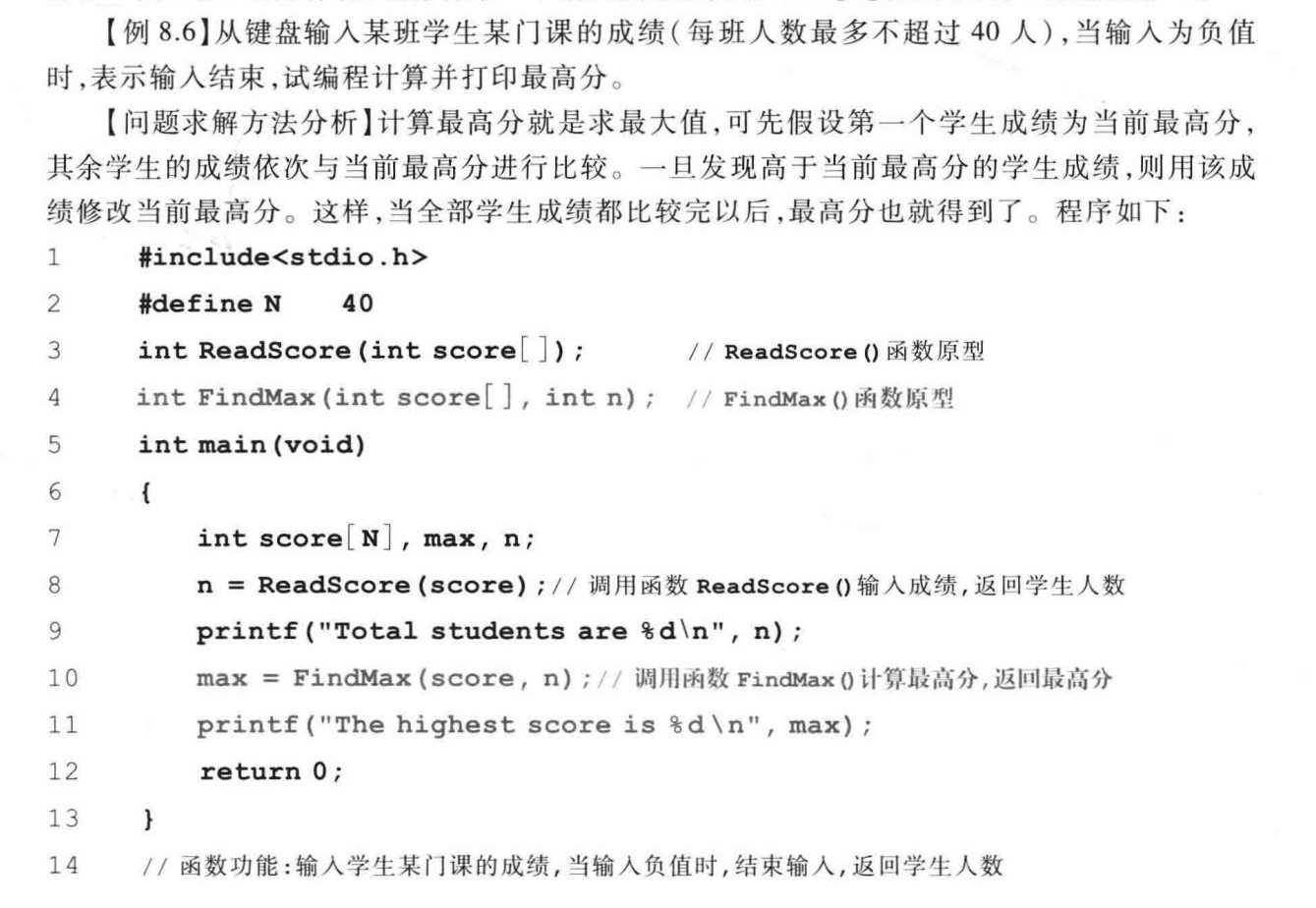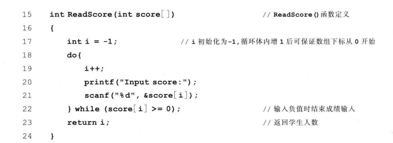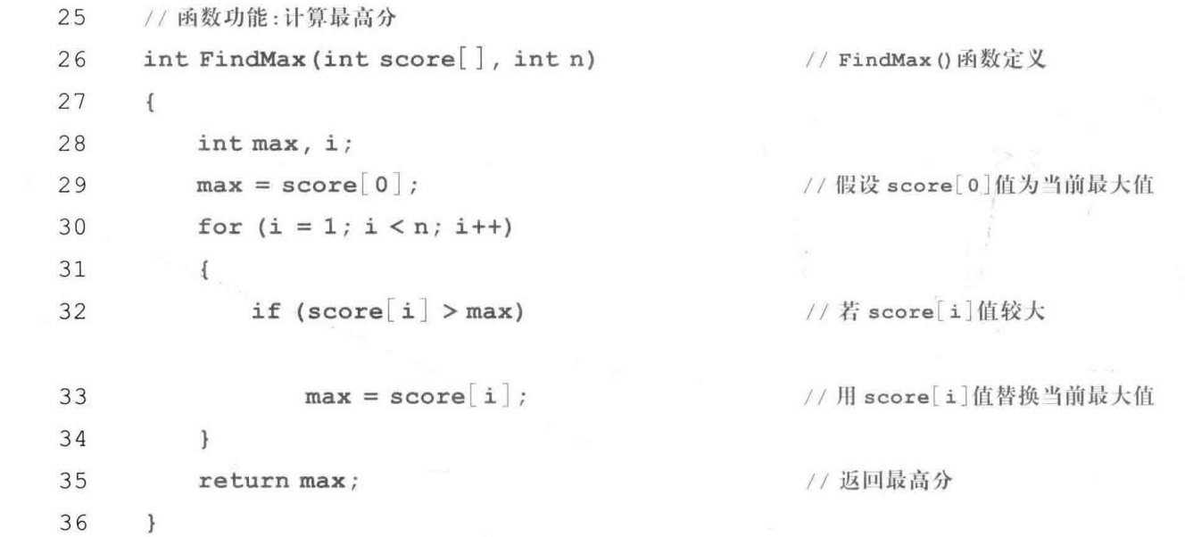 若要把一个数组传递给一个函数,那么只要使用不带方括号的数组名作为函数实参调用函数即可(如程序第10行和第11行语句所示)。注意,仅仅是数组名,不带方括号和下标。