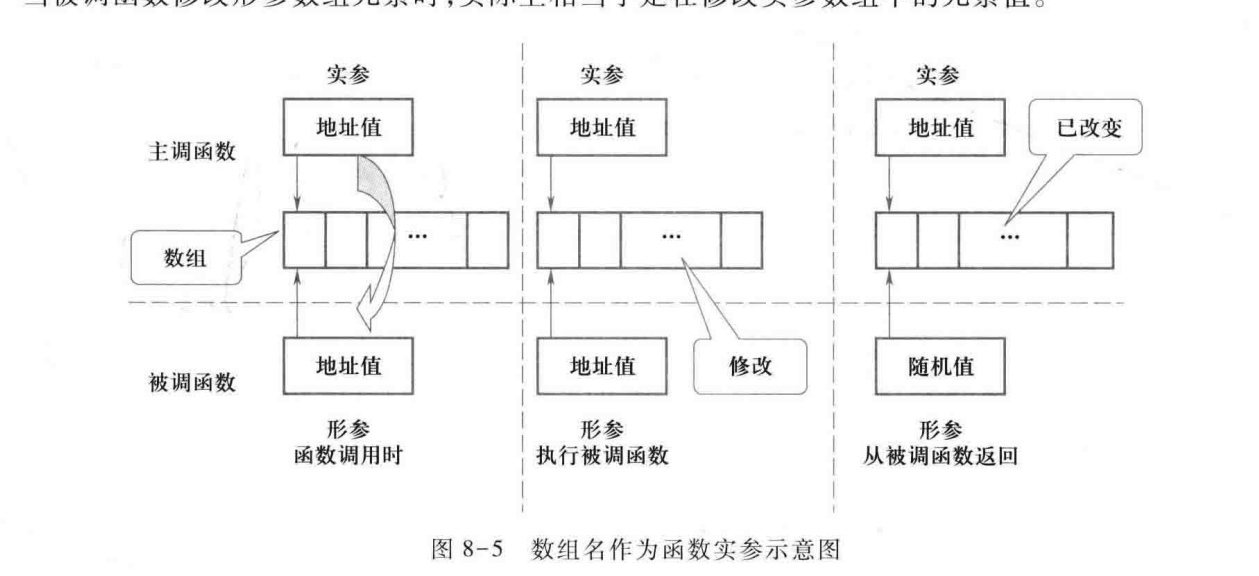 由于数组名代表数组第一个元素的地址,因此用数组名作函数实参实际上是将数组的首地址传给被调函数,之所以这样是出于性能方面的考虑。因为相对于以传值方式将全部数组元素的副本传给被调函数而言,只复制一个地址值的效率自然要高得多。