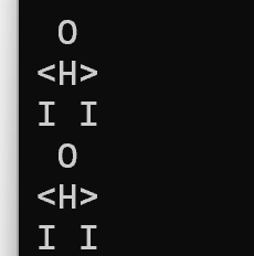 #include <stdio.h> int main() { printf(" O \n"); printf("<H>\n"); printf("I I\n"); printf(" O \n"); printf("<H>\n"); printf("I I\n"); return 0; }