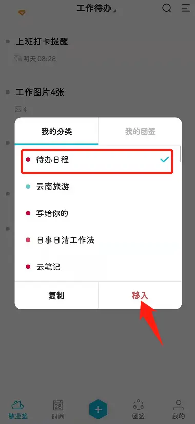 4、我们打开移入的那个分类,接着就可以看到这条带有附件的便签被成功移入到这个分类中了。