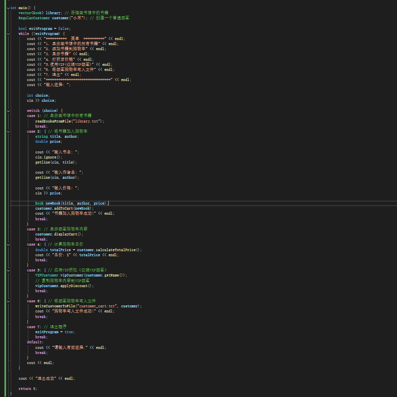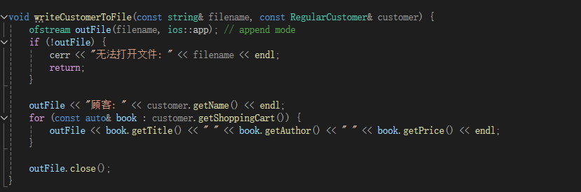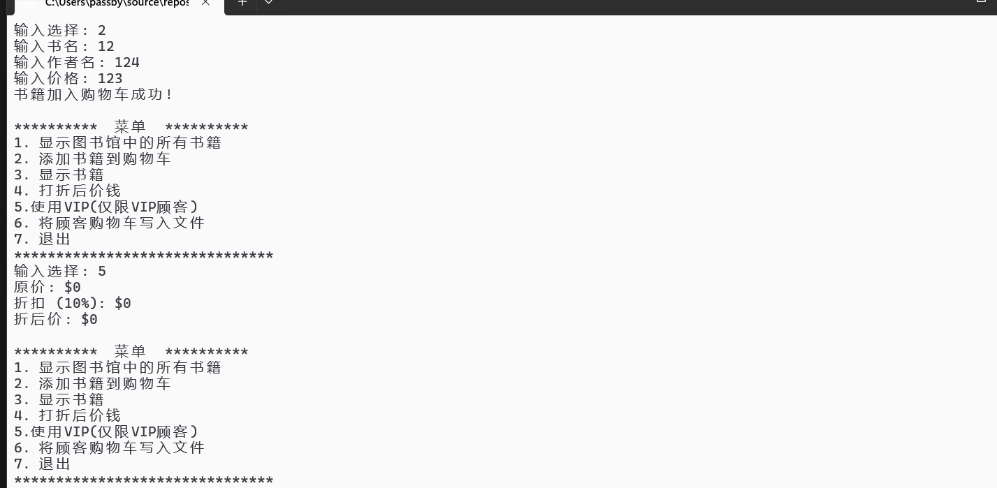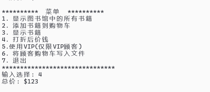 同时增加writeCustomerToFile 可以考虑改为保存更多关于顾客的信息,比如顾客的类型(普通顾客或VIP顾客)以及购物车中的所有书籍。